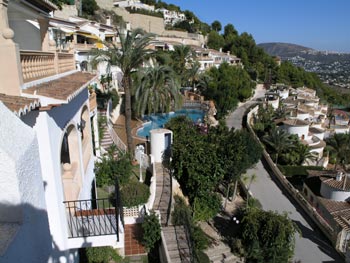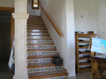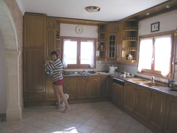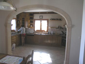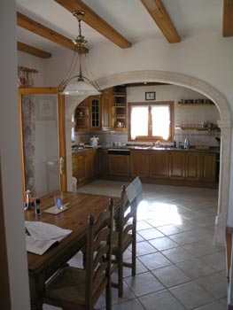 | Looking into the kitchen from breakfast table | Living room upstairs, on balcony level |